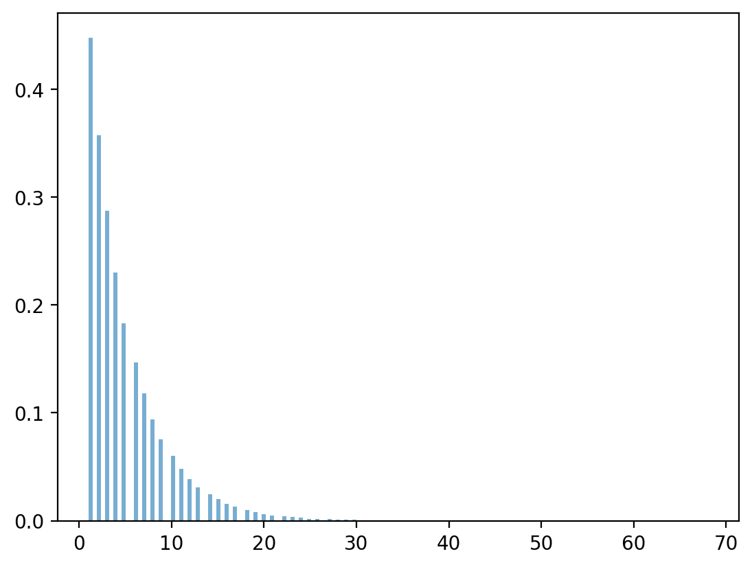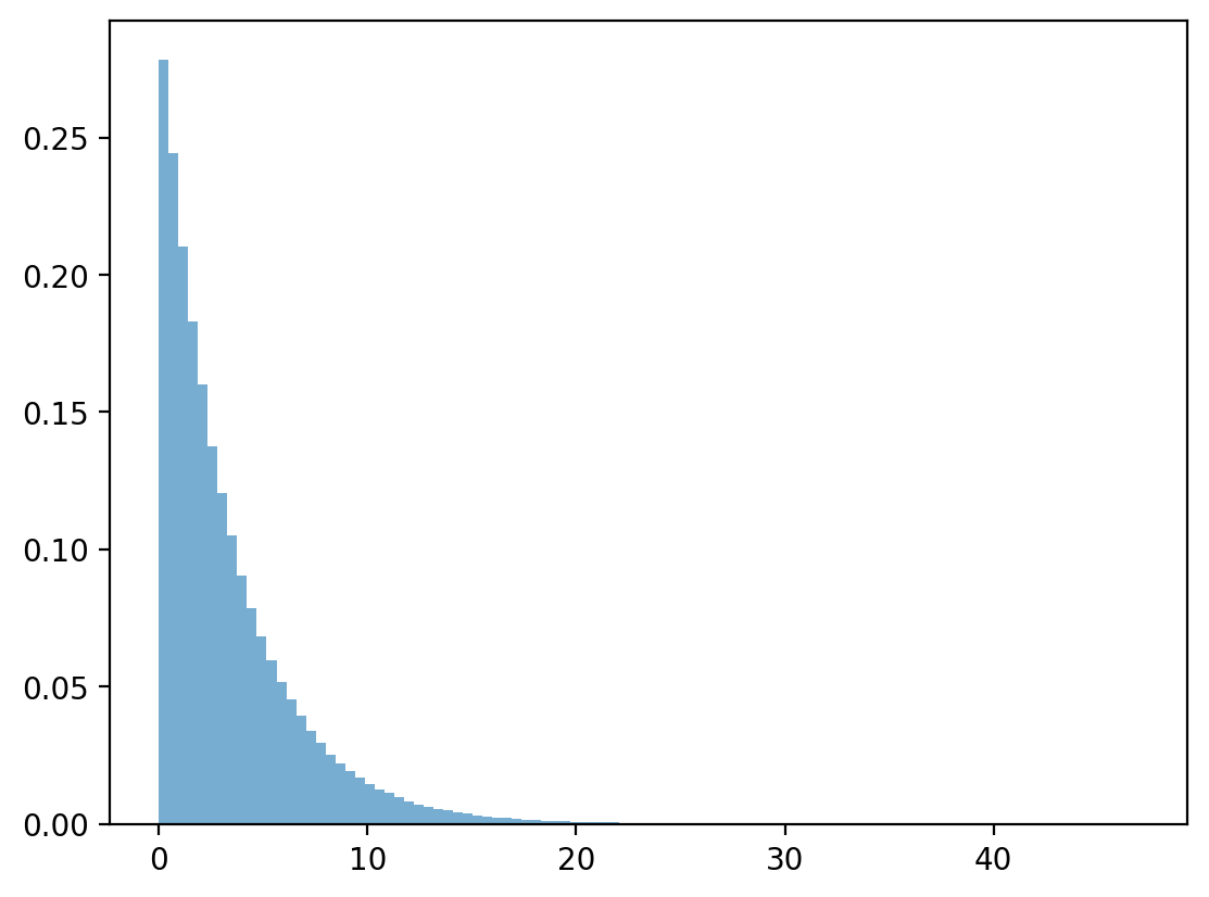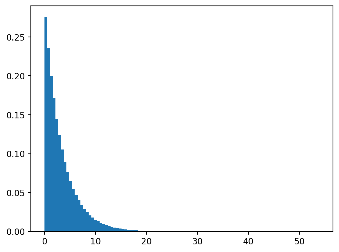 We can verify that \(x\) is indeed geometrically distributed by the following numpy program.