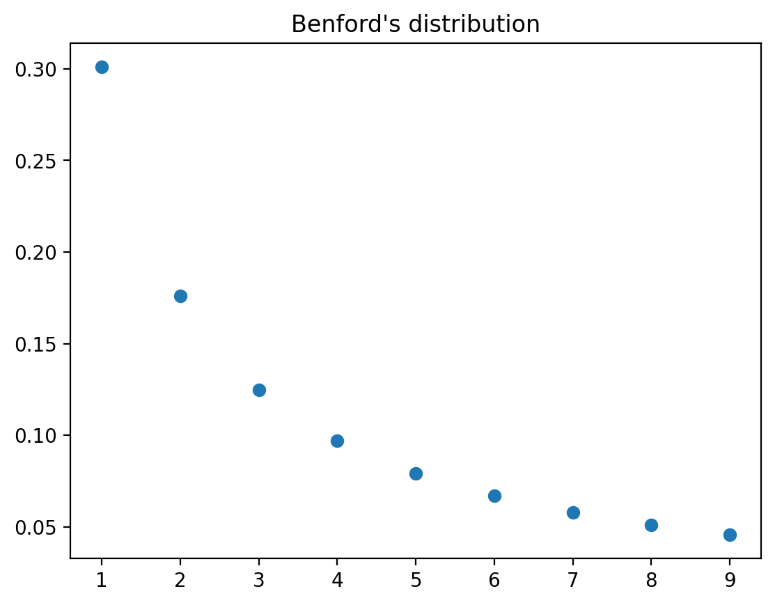 Benford_pmf = np.array([np.log10(1+1/d) for d in range(1,10)])